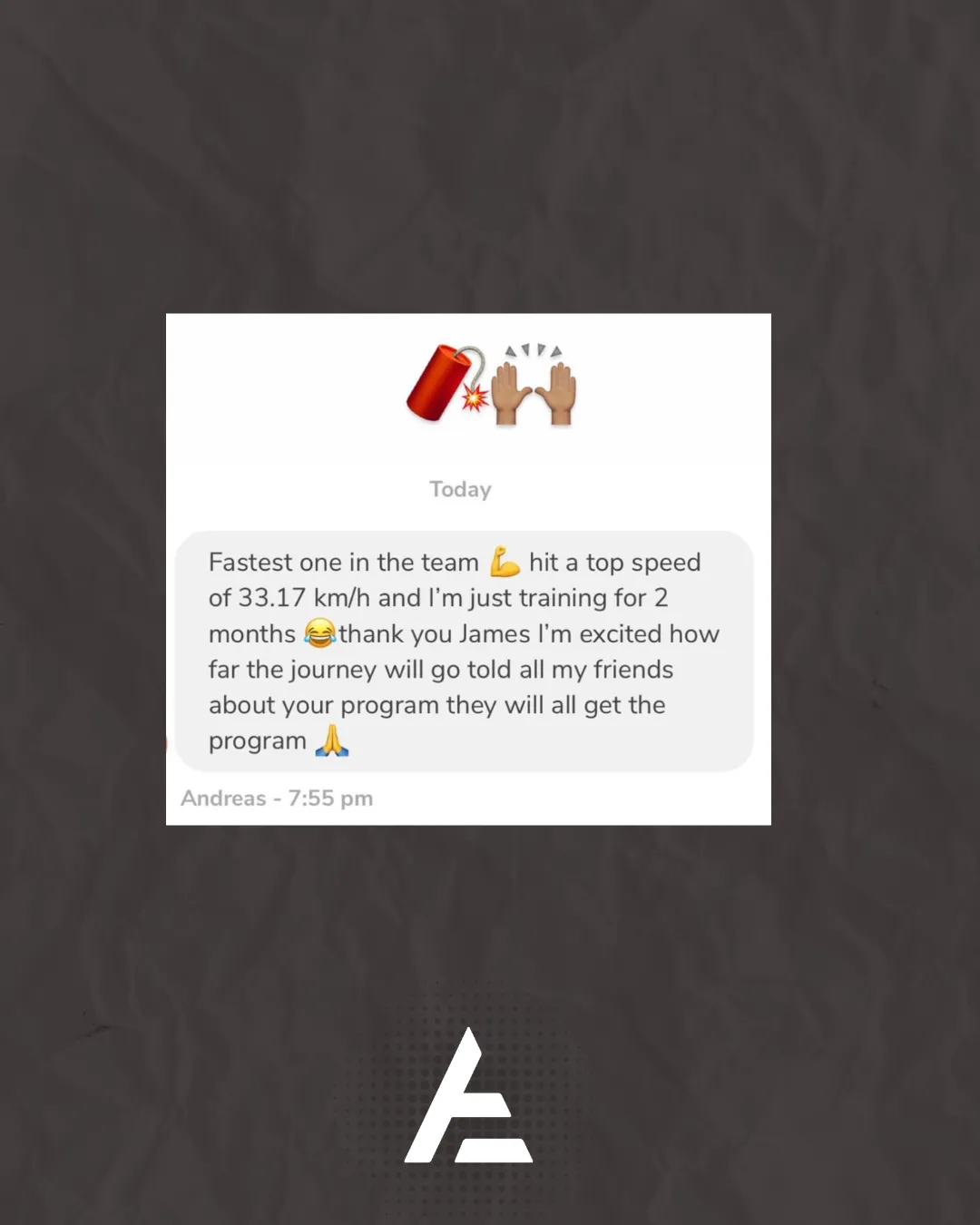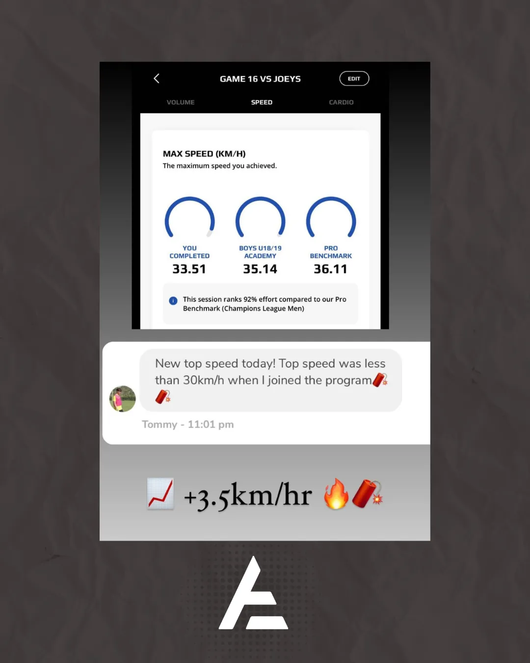 We’ve partnered with an AI app that allows us to analyse your running technique in minutes, all with just your iPhone! You can track your Acceleration, Top Speed and even Change of Direction - it’s a GAME CHANGER!